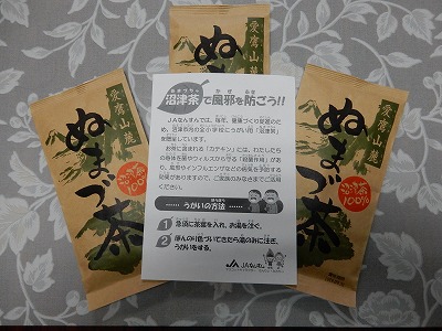 『JAなんすん』様から、うがい用の『沼津茶』をいただきました。(3・4年生)