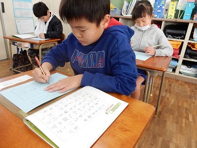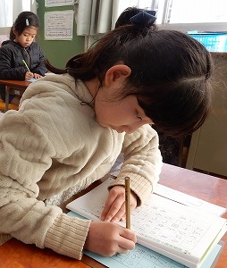 全部で50文字の文章を、文字の形や筆順に気をつけて書きました。