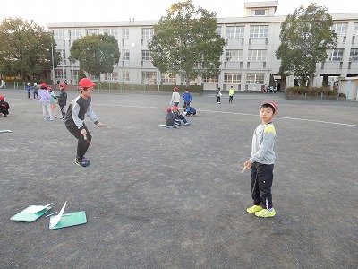 縄跳びカードの取組が始まったので、友達と一緒に縄跳び運動に取り組む子の姿が増えました。