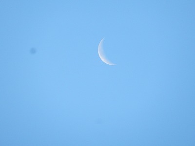 南から少し東によって空の高いところに、三日月のように細くなった月が見えました。
