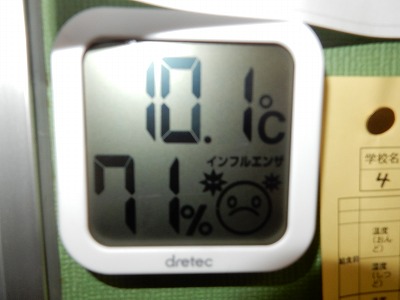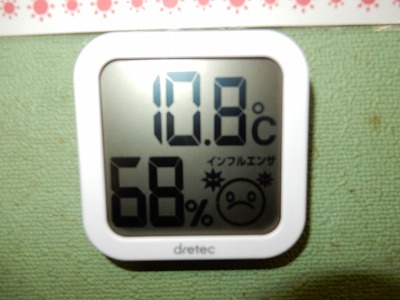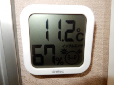 気温は10〜11度、湿度は70%前後です。温かく湿度が高いことで、インフルエンザの流行が終息するのを願うばかりです。