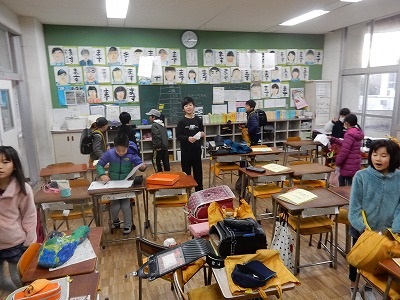 インフルエンザが治って登校した子、元気だったのに学級閉鎖だったので家でむずむずしていた子…、久々の再会で、クラスが賑わっていました。