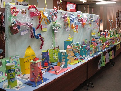 平面作品(絵画)、立体作品(工作)、書写の作品が展示されています。