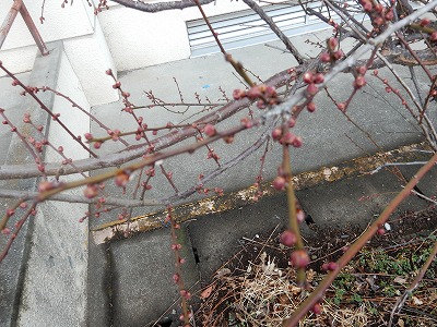 暖かな日があったのでつぼみが少し大きくなったような気もしますが、まだ堅いです。