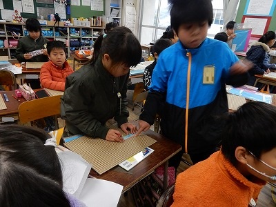 「長さを間違えないように」「しっかりマス目を数えよう」を合い言葉に、真剣に取り組む子どもたちです。
