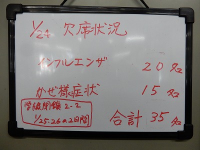 インフルエンザ等の状況 (1月24日) 『2年2組が1/25,26学級閉鎖』