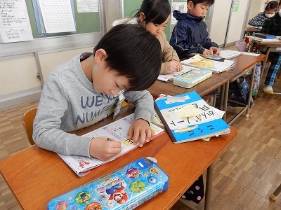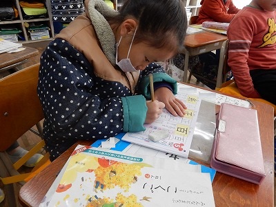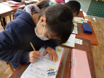 ドリルを使って、漢字の学習です。