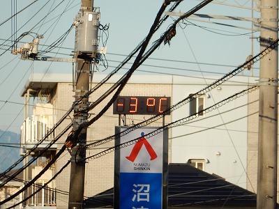 沼信の外気温は、『—3度』を示していました。早く登校した子は、『−4度』だったと言っていました。