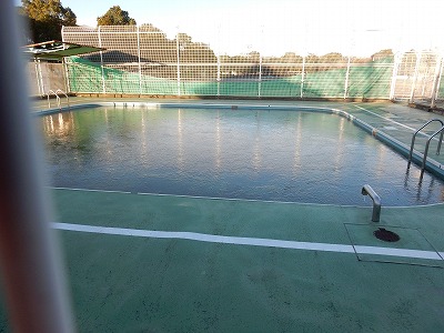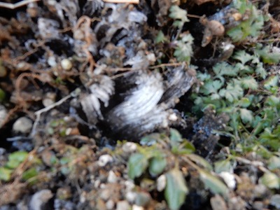 小プールの水は凍っていました。また、花壇には霜柱が立っていました。