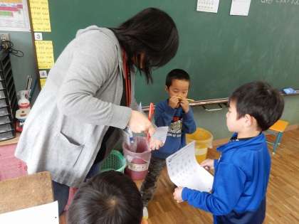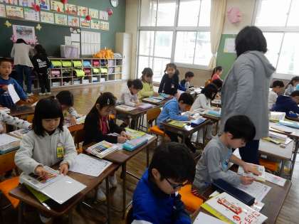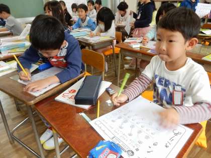 問題を解き終わると先生のところに持っていって、みてもらいました。