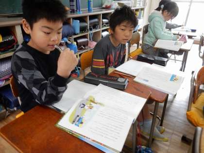 物語文『白いぼうし』を読んで、おもしろかったところや不思議に思ったことを書き出して、発表し合いました。
