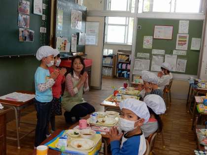 当番の「おいしい給食、いただきます。」で、