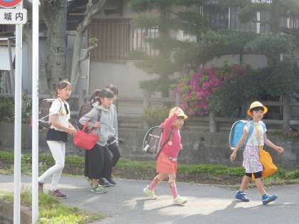土曜日ですが、『参観日・PTA総会・引き渡し訓練』があるので、子どもたちが登校してきました。