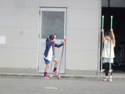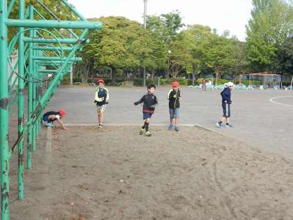 朝7時半頃、黙々とグランドを走る子、竹馬を練習する子、ジャンケンで鬼を決めて鬼ごっこを始める子などの姿が見られました。