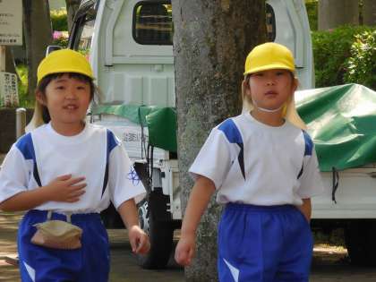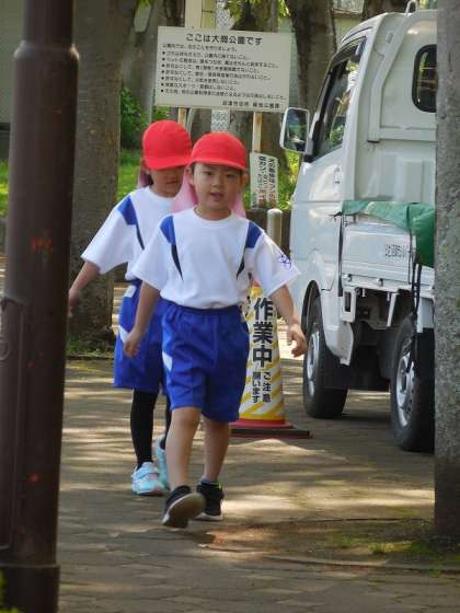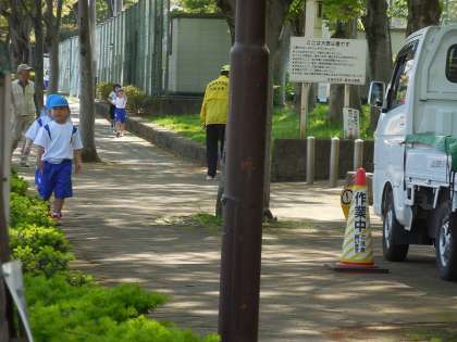 教室で気をつけることを学習した後、実際に学校の外に出て、道路を歩きました。