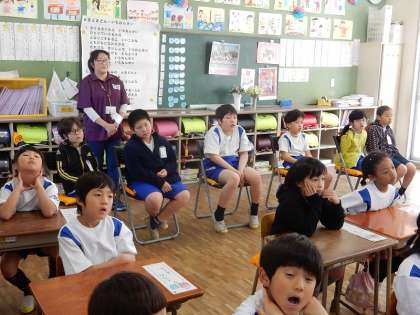はじめに教室でお話を聞き、その後学校の外に出て実際に歩いて確かめました。
