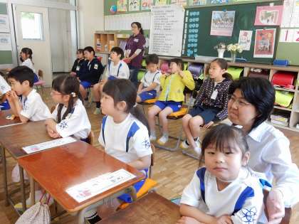 1年生の交通安全教室に、ききょう組の子どもたちも一緒に勉強しました。