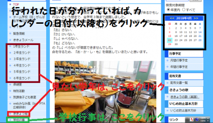 ○入学式等、見たい行事…画面左側の「学校行事」をクリック