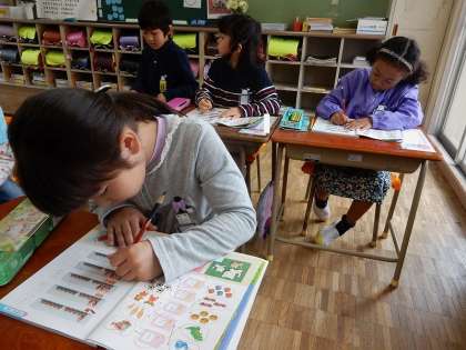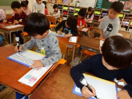 先生にみてもらい、終わった子はホワイトボードに数字を書き続けていました。