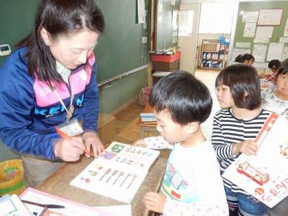 これまで学習した1〜5までの数を、色を塗ったり、数字を書いたりして確かめました。