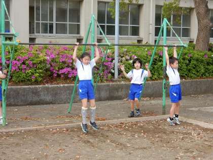 高鉄棒では、体をゆらして遠くまでとぶ姿が見られました。