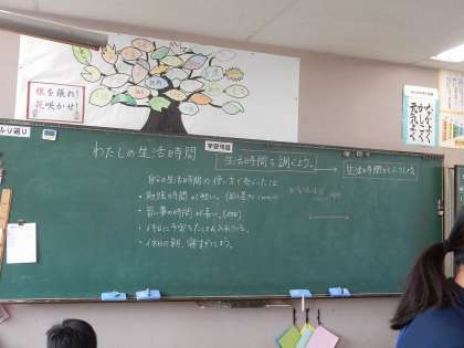 『わたしの生活時間』という単元で、先週調べた「生活時間」と今回調べた「生活時間」とを比べてみました。