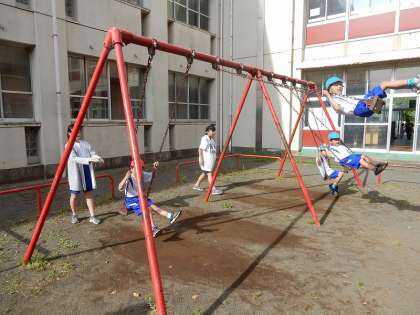 グランドでは、鬼ごっこをしたり、リレーの練習(5年生)をしたりする姿が見られました。