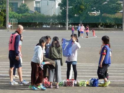 中庭では、1年生と6年生が仲良く遊んでいました。