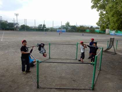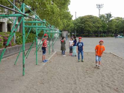 これから遠足…ですが、元気な子どもたちは、中庭や運動場で遊んでいました。