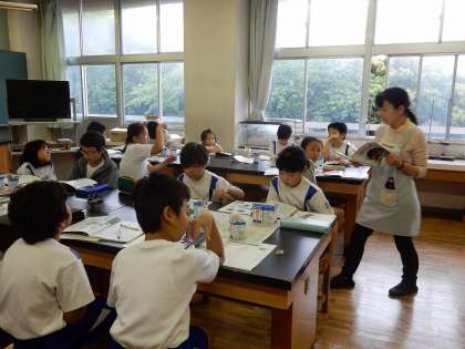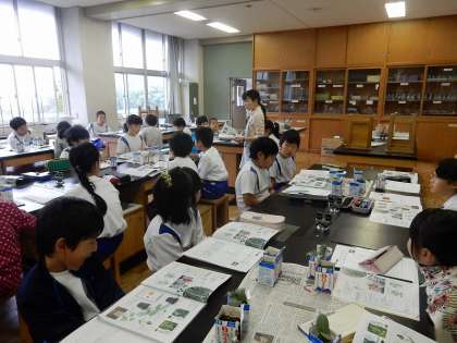芽の形や草丈、色などを観察し、カードに記録しました。