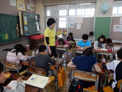 その後、前の時間に取り組んだ表現(組体操)でどんな技を練習し、どの程度できたのかを振り返りました。