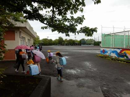 グラウンドはぬかるんでいるため、外で体を動かすことはできません。