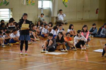 校舎を上から見た時の形、校長先生の名字…、3択問題で盛り上がりました。