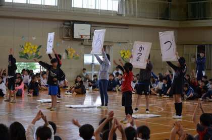 6年生からは、学校に関するクイズが出されました。