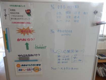 6年生の掲示板には、今日の予定などが書かれていて、見通しを持って行動する手助けになっています。