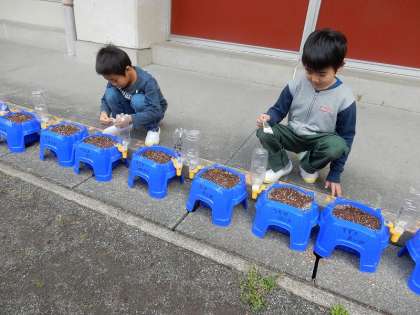 昨日、あさがおの種まきをしたので、水やりが追加されました。