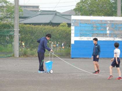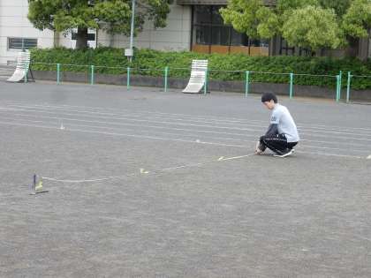 グラウンドでは、運動会に向けたラインなどの準備が進められていました。