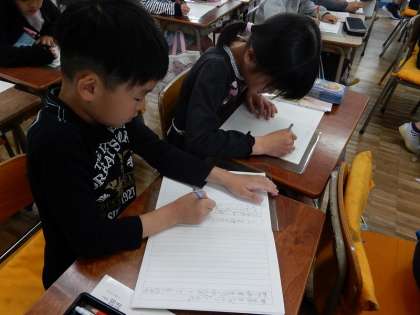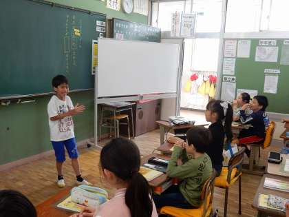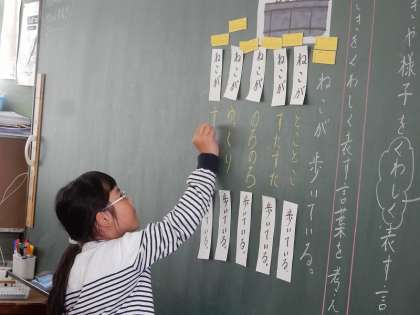 映像を見て、それにぴったり合う言葉を探して表現しました。