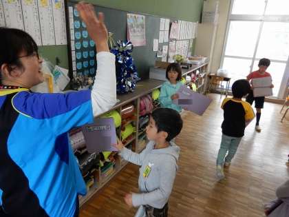 カードはファイルに綴じて、教室で保管します。