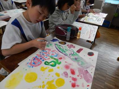 図工で描いた絵が仕上がりました。