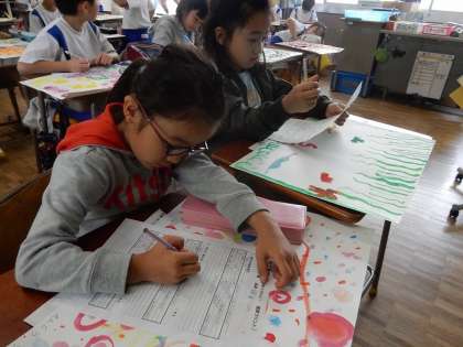 自分の作品の良いところ、友達の作品の良いところ 3年・図工