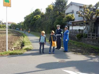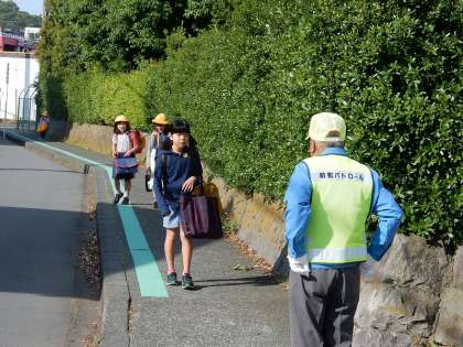 今朝は、市と大岡地区の交通指導員さんも見守ってくれていました。