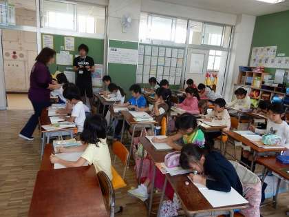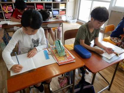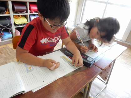『ねこが、歩く』『雨が、ふる』の「歩く」「ふる」を詳しくする言葉を考えました。