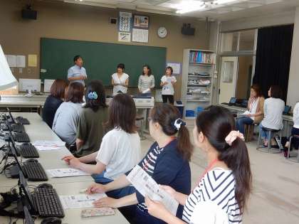広報研修委員の方が集まり、ホームページ「Webみなみ風」の作成方法を校長先生と教頭先生に教えていただきました。