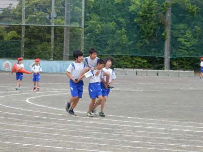 運動場では、団体競技の練習が行われていました。