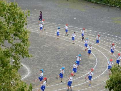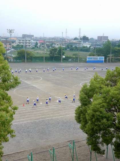 トラックのラインを使ったり、トラック内の円を使ったりして、ダンスを踊りました。