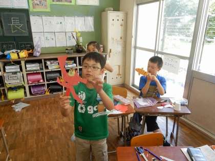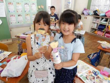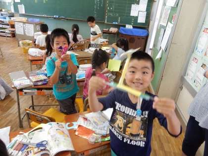 できあがると、友達や先生に見せていました。