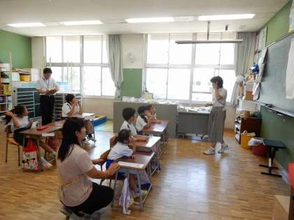 どこで切ったらリズムよく読めるか、みんなで考えて読みました。