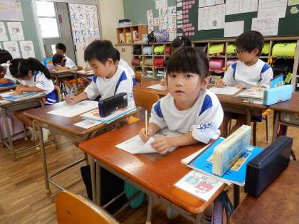 おじいさんの気持ちをかんがえ、どんなことを言ったのかをプリントに書き込みました。