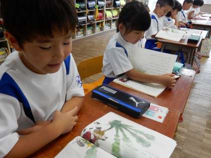 「うんとこしょ、どっこいしょ」の声の大きさや言い方を工夫して、読みました。